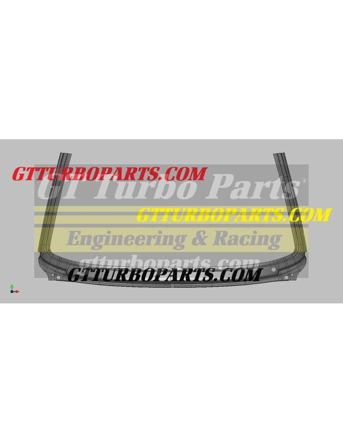 Windshield structure frame. OWN AND EXCLUSIVE DESIGN, MODELING AND MANUFACTURING by GTTURBOPARTS.COM, with Q235 material that gives it superior rigidity properties and anti-corrosion protection by cathodic electrodeposition to offer very high protection against corrosion.